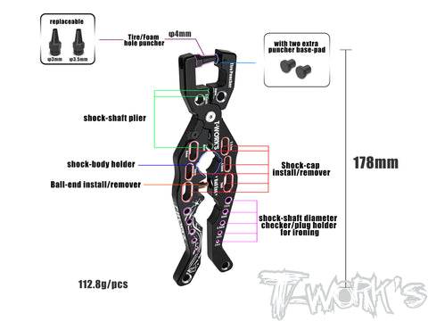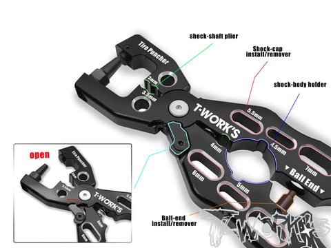 *Shock-cap install/remover: Provided with multi-specification shock absorber cover installation/removal holes (4mm/4.5mm/5mm/5.5mm/7mm) to fit various models;